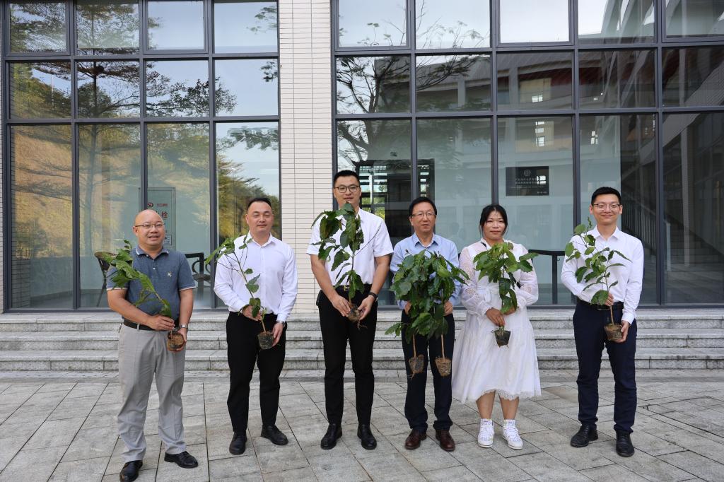 刘宝文一行先后在阳江校区厚为楼参观校区整体规划和建设情况以及校园风貌,走访参观食品科学与工程学院和商学院,深入了解校区相关学院的教学、科研、实验室的建设现状及科研成果等情况,并向商学院捐赠一批来自云浮市云安区的咖啡树。