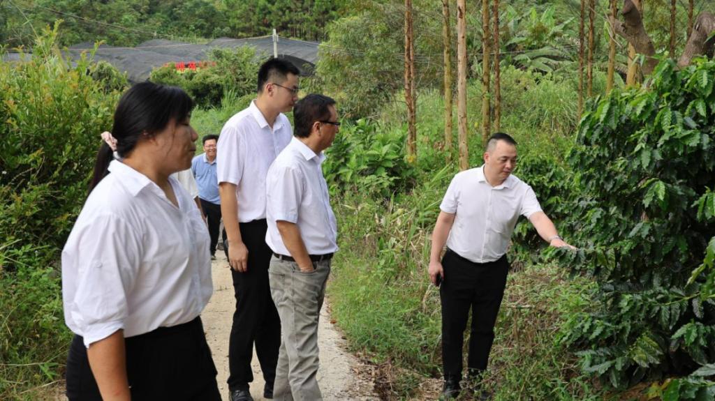 调研组来到云浮市云山红农业发展有限公司,在公司负责人梁玉华的陪同下,深入咖啡苗圃场实地察看了咖啡树的生长现状、种植管理以及病虫害防治情况,随后参观云安区人才驿站并举行交流会。