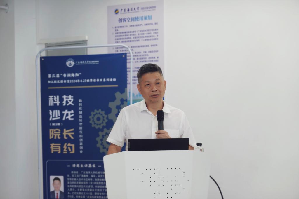 5月15日下午,阳江校区图书馆在海纳楼(图书馆)207室创客空间举办第3期科技沙龙·“院长有约”。本次活动由阳江校区图书馆、机械与能源工程学院和共青团开云kaiyun登录入口阳江校区委员会主办、科技创新协会承办,特邀机械与能源工程学院院长陈扬枝作为主讲嘉宾,校区图书馆馆长李中主持活动,校区80余名师生及图书馆相关工作人员参加活动。