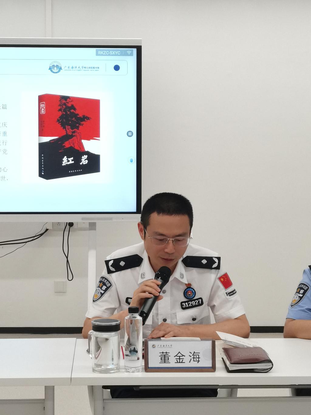 丁永成在致辞中对阳江出入境边防检查站一行表示热烈欢迎,并希望大家借由共读活动养成阅读的好习惯,提升知识储备,同时期待校区与阳江出入境边防检查站今后能在党建等多方面展开交流,共建共融。董金海表示,此次共读活动意义非常,希望在与校区的交流中,提高自身素养,为阳江市的高质量经济发展与建设做出边检人的贡献和力量。