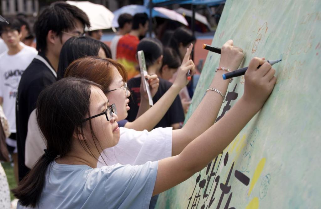 活动现场布置了三个功能区,展出了各类校园文创作品,有摄影作品、“以笔抒情”活动优秀成果、“拼贴诗”活动优秀成果汇集形成的展示区,春日捕捉计“画”海报接力绘画区,“悄悄话”传送区。同学们通过“打卡集章”的形式穿梭于各功能区之间,感受浓厚的文化氛围,以笔墨绘出海大青年眼中的春天。