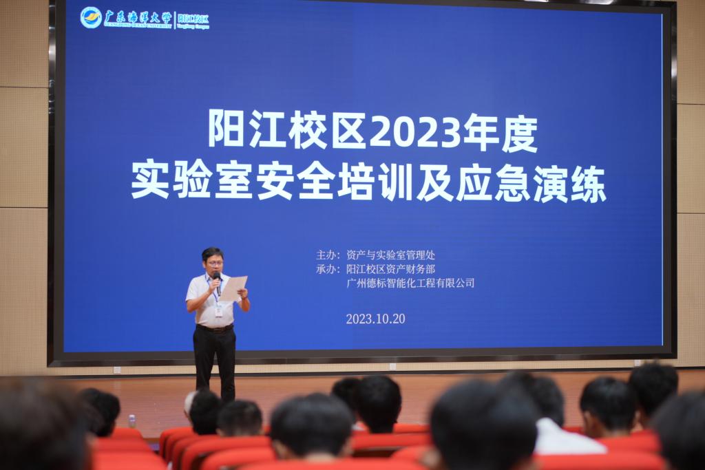 10月20日,资产财务部开展了阳江校区2023年全校实验室安全培训及应急演练。本次活动由校区资产与实验室管理处主办,得到了阳江校区各教学单位、后勤保障部、物业、医务室等部门的积极响应,共有100余人参与了培训与演。此次活动由资产财务部第二负责人王春强主持,资产与实验室管理处杨原志处长带队莅临指导此次活动。