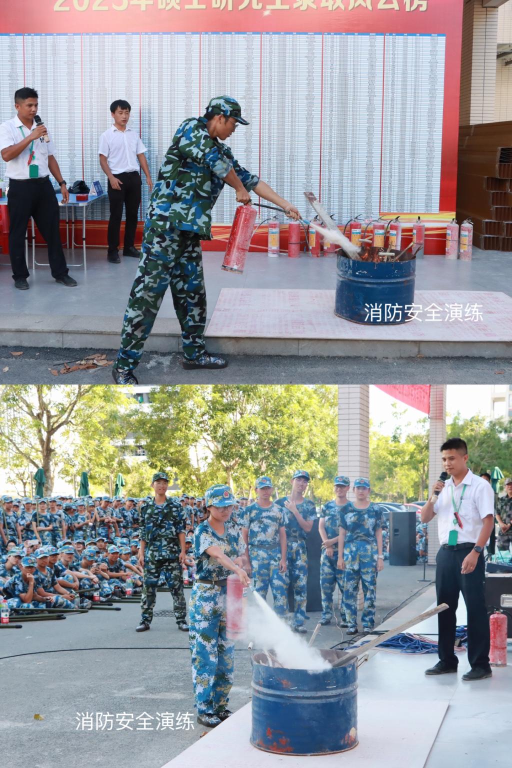 疏散结束后,校区物业项目部工程主管潘洪辉为同学们现场开展了灭火器相关知识讲解与操作示范,并指导同学们现场使用灭火器进行灭火。