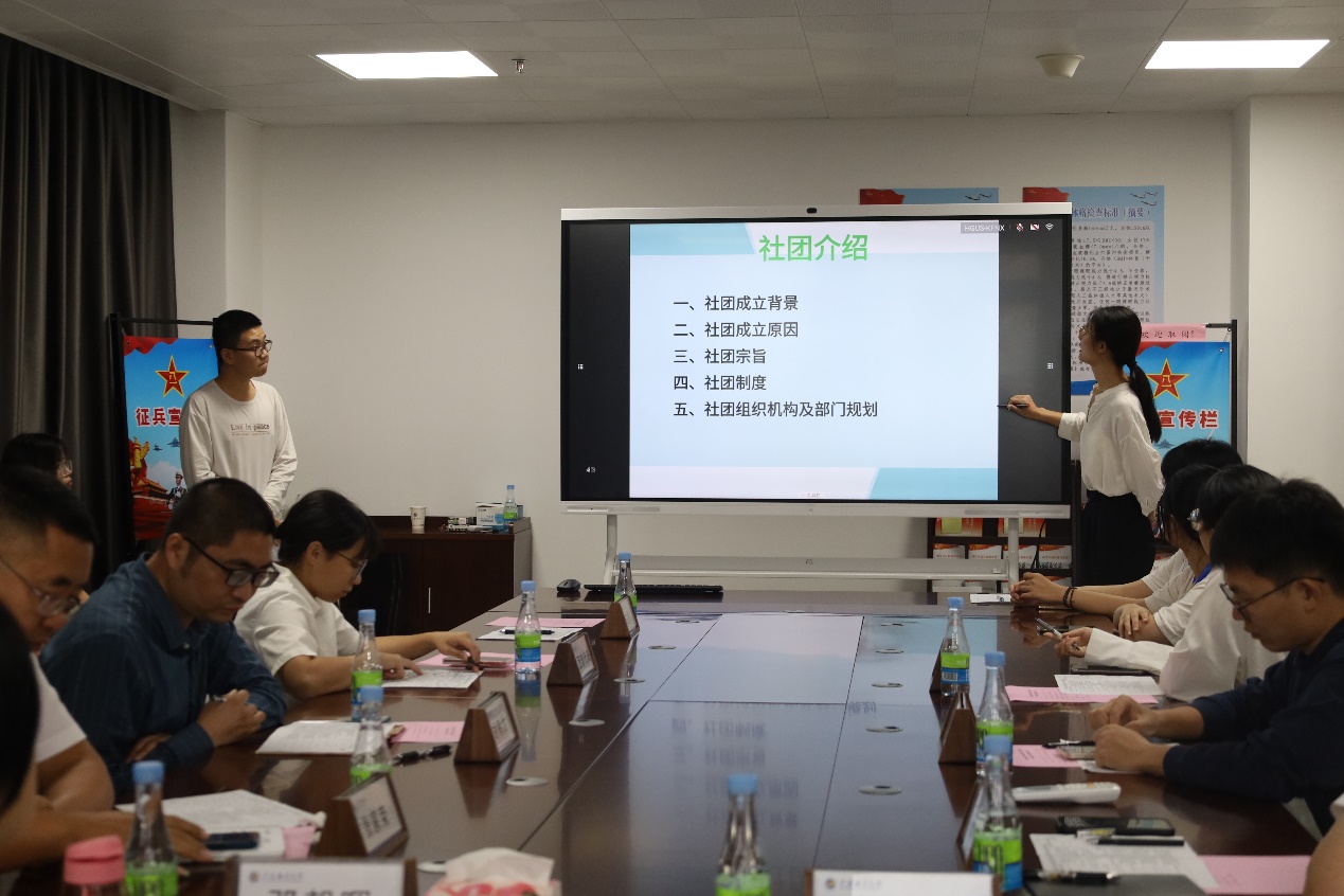 会上,各社团答辩负责人围绕本社团创立宗旨进行4分钟的展示,详细叙述了社团特色、成立目的和筹备基础,明确社团的发展方向和定位。展示结束后评委组结合申报材料及答辩内容对各社团的发展规划、管理机制等方面进行提问,并提出相关建议及意见,会后由评委组商议决定答辩结果。
