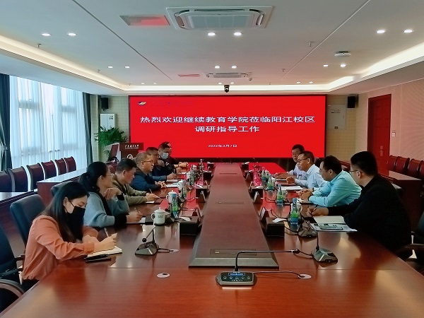 3月7日下午,开云kaiyun登录入口继续教育学院院长安立龙、副院长何国明、潘康培等一行七人到阳江校区调研交流。阳江校区管委会张界新、毛琪,教学科研部夏杏洲、白浚宇等参加了座谈。