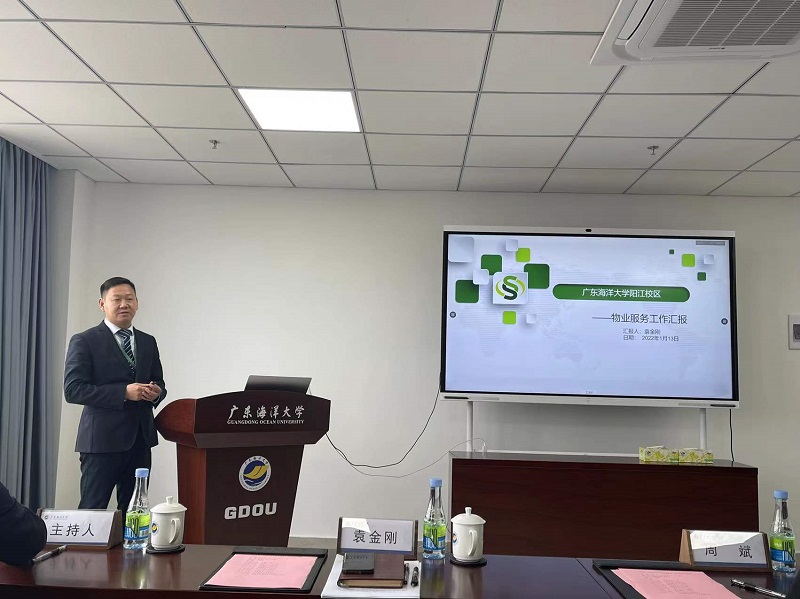 1月13日下午,开云kaiyun登录入口阳江校区2021年度物业服务工作总结汇报会在海纳楼五楼521会议室举行。后勤保障部部长袁仁广、副部长周斌和苏东吴物业副总经理周长、广州分部经理陆文君、东吴物业市场部经理钱程、校区物业项目经理袁金刚等领导以及校区物业各条线的主管参加了会议。会议由宋晓梅主持。