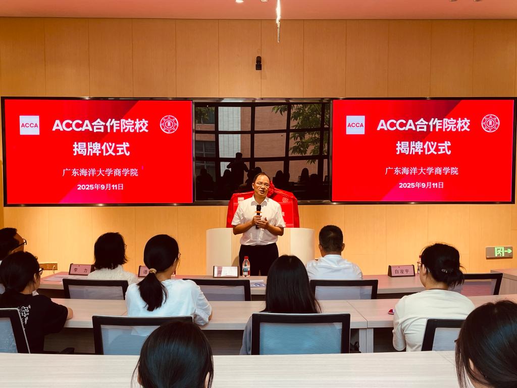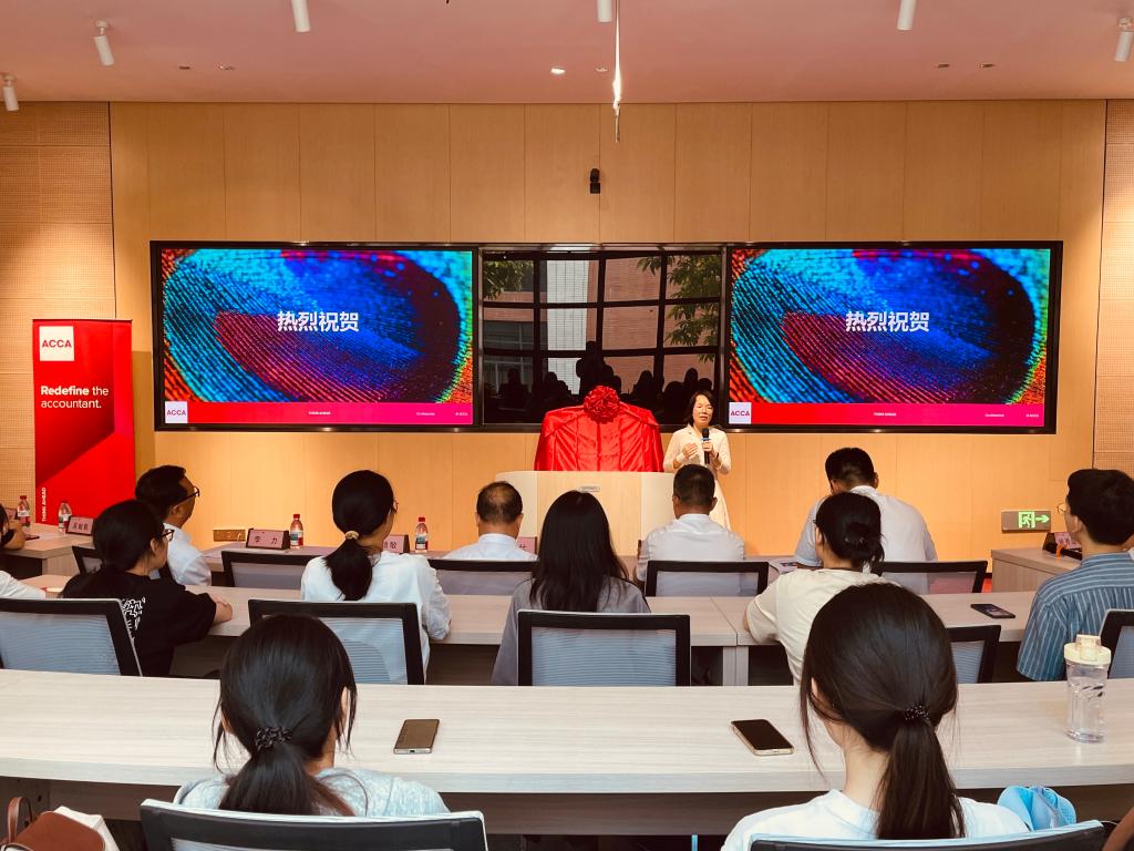 9月11日上午,商学院 ACCA(英国特许公认会计师公会)合作院校揭牌仪式在济航楼举行。ACCA华南区及中国会员关系总监谭颖敏,学校党委常委、副校长周昌仕,阳江校区党委副书记丁永成、教学科研部部长白浚宇,商学院党总支书记植秀成、院长李力、会计学专业及ACCA教学中心全体教师和ACCA创新实验班全体同学出席仪式,共同见证这一推动商学院会计专业国际化发展的重要时刻。揭牌仪式由植秀成主持。