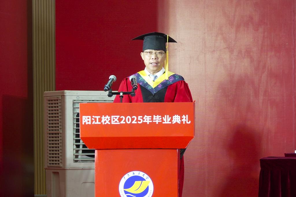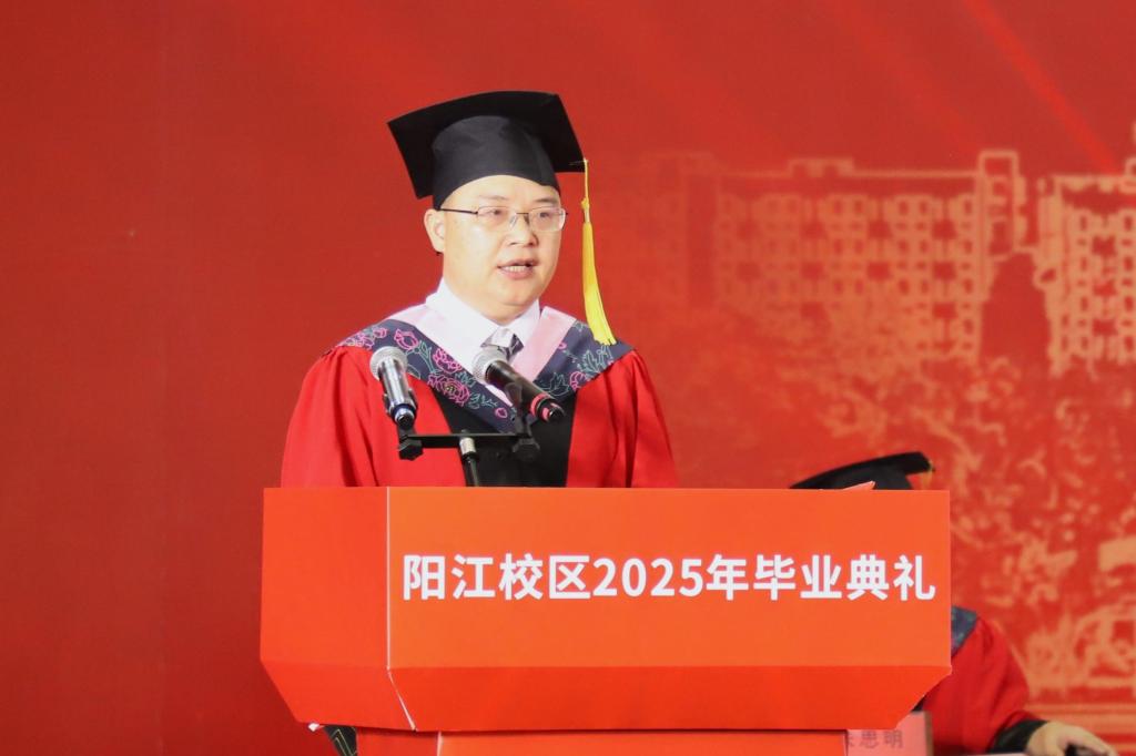 周昌仕在主持典礼时表示,毕业典礼不仅是大学时光的完美谢幕,更是开启人生新征程的激昂序曲。同学们即将带着阳江校区赋予的勇气与智慧,奔赴广阔天地。无论身在何方,愿同学们在各自的人生赛道上,以行动为笔,以汗水为墨,绘就绚丽多彩的人生画卷。