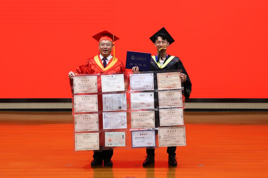 曾新安为优秀本科生毕业生代表颁发荣誉证书
