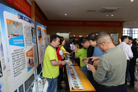 现场,丁永成,阳江市委国安办、市国家安全局领导,团阳江市委刘粉英书记,阳江市委外办冯可副主任,阳江市检察院冯玲副检察长,阳江市公安局李儒侠副支队长,共同为国家安全主题校园微展览揭幕。随后现场,师生们一起观看了国家安全主题公益宣传片、展览以及反邪教、反恐怖案例和禁毒知识宣讲。