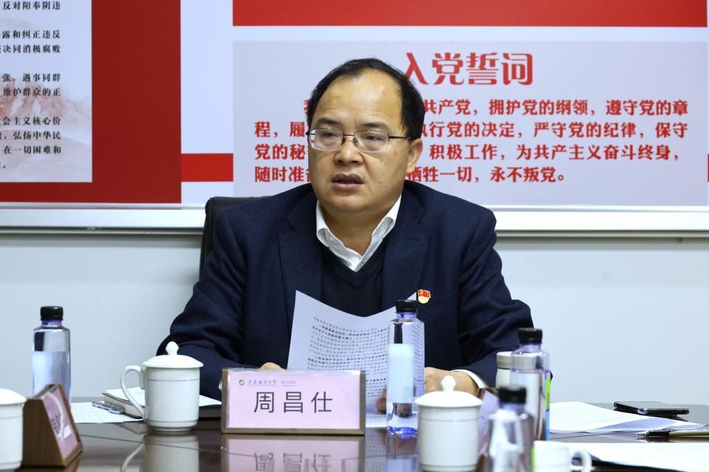 1月12日上午,阳江校区2024年度领导班子民主生活会集体学习研讨暨党委理论学习中心组学习会在海滨校区继续教育学院会议室举行,深入学习习近平总书记在中央政治局民主生活会上的重要讲话精神,切实增强开好民主生活会的思想自觉和行动自觉,为开好校区民主生活会打牢思想基础。校党委常委、副校长、阳江校区党委书记、管理办公室主任周昌仕主持会议并讲话。校区党委理论学习中心组成员参加会议,校区相关部门负责人列席会议。