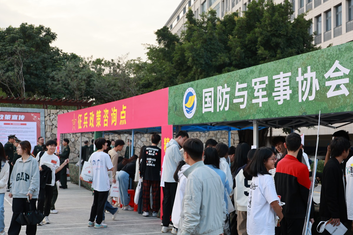 最后,启动仪式在嘹亮的军歌声中圆满结束。启动仪式结束后,阳江校区联合阳东区人武部在海纳楼东侧小广场开展国防教育进校园活动。现场设立了国防教育展区、设备体验区和政策咨询区,吸引了众多师生前来咨询体验,激发了同学们对部队的兴趣和参军入伍意愿,大大增强了师生们的国防意识。