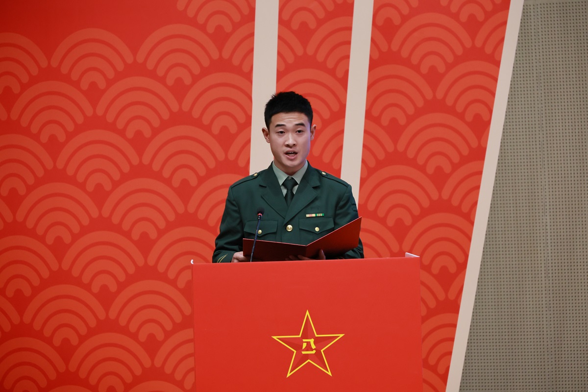 商学院拟报名入伍2021级学生代表陈旖旎在仪式上发言:“军队,是国家的坚强后盾,它守护着每一寸国土,捍卫着每一个公民的安宁,而投身军旅,正是我们每一位有志青年的神圣使命和光荣职责。”退役复学大学生卜鑫彬现场分享了自己的军旅生活:“战友亲如兄弟,每当遭遇挫折与困难时,他们总会伸出援手,给予我帮助与鼓励,这份真挚的战友情,将是我一生的财富。”两位现役军人代表现场回顾军旅的峥嵘岁月,畅谈思想感悟,分享成长收获,鼓励在座学生积极投身到国防建设事业中。