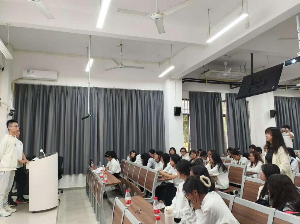 分享会上,两支团队的成员不仅分享了他们在“挑战杯”竞赛中的亲身经历和宝贵经验,还以参赛作品作为分享案例进行细致解读,并对参赛过程中的注意事项提供了实用的建议和指导。在互动问答环节,同学们积极提问,团队成员们结合丰富的实战经验对同学们的疑问进行了耐心解答,现场气氛活跃,交流深入。