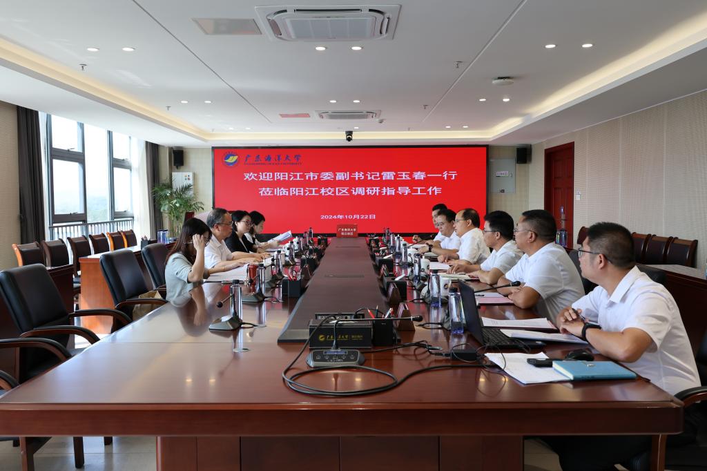 10月22日上午,阳江市委副书记雷玉春率团市委书记刘粉英一行莅临阳江校区调研。学校党委常委、副校长、阳江校区党委书记、管理办公室主任周昌仕,阳江校区党委副书记丁永成、陈永强及相关单位(部门)负责人参加座谈会。会议由周昌仕主持。