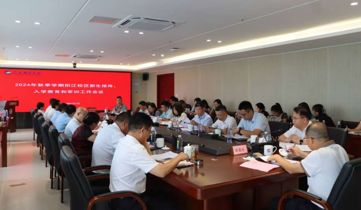 为切实做好2024年秋季学期新生入学报到、教育、军训等工作,9月4日上午,校区在海纳楼712会议室召开了2024年秋季学期新生接待、入学教育和军训工作会议。学校党委常委、副校长周昌仕,校区党委副书记丁永成、陈永强,各学院党总支书记、院长,机关职能部门部长,图书馆馆长,全体辅导员以及学生事务部全体人员参加了此次会议。会议由陈永强主持。