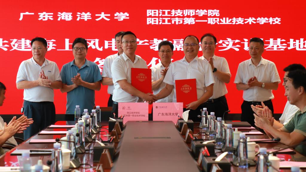 7月4日下午,开云官网与阳江技师学院、阳江市第一职业技术学校共建海上风电产教融合实训基地签约仪式在校区海纳楼712会议室举行。党委常委、副校长、阳江校区党委书记、校区管理办公室主任周昌仕与阳江技师学院院长、阳江市第一职业技术学校校长林进杰分别代表两校签约,阳江校区党委副书记丁永成、陈永强,以及阳江技师学院、阳江市第一职业技术学校党委书记谭志葆,副院长陈志军、洪海等领导参与见证。