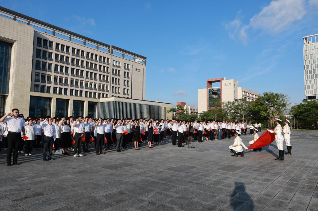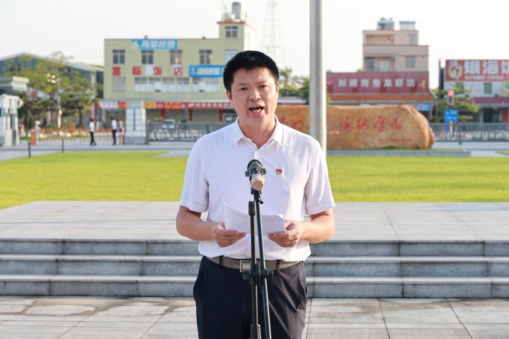 丁永成以“传承红色基因,弘扬伟大建党精神”为主题作讲话。他指出,举行升旗活动,不仅仅是为了庆祝党的生日,更是为了传承红色基因,弘扬伟大建党精神。当前我们国家正处于全面建设社会主义现代化国家新征程上,全党正在开展党纪学习教育,要以“七一”为契机,进一步激发基层党组织活力,增强广大党员的光荣感、使命感;紧紧围绕“高水平大学建设”目标,以高质量党建引领高质量发展。丁永成勉励全体师生,要凝心聚力、团结一致,以更加饱满的热情、更加昂扬的斗志、更加坚定的信念,笃行不怠、久久为功,传承弘扬好海大精神,全力推动校区党的建设迈上新台阶、引领校区高质量发展取得新成绩,努力在教育强国征程中展现“阳江校区”新作为、谱写“阳江校区”新华章。