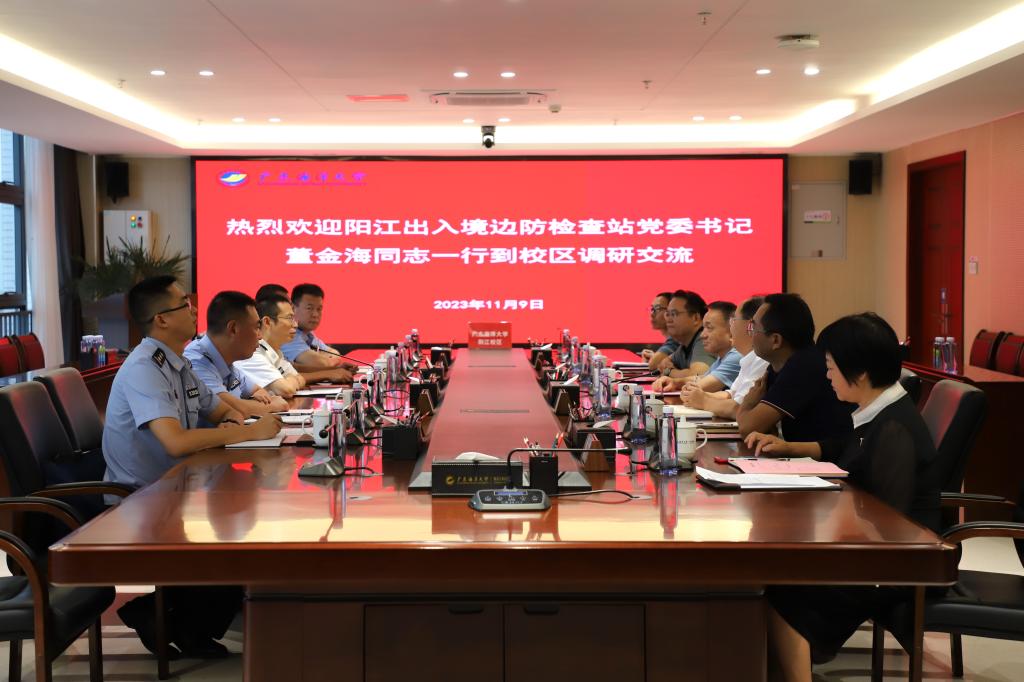 11月9日下午,阳江出入境边检站党委书记、站长董金海一行到阳江校区调研。学校党委常委、副校长、阳江校区党委书记、管委会主任宁凌,阳江校区领导周昌仕、陈永强、毛琪、李鹏虹以及校区相关部门负责人参加活动。