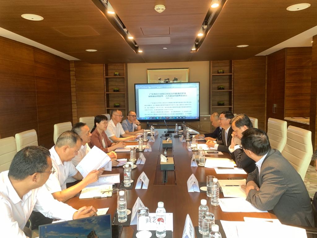 校区管委会常务副主任周昌仕,管委会委员毛琪,商学院负责人李力,阳江市教育局局长利社会、代建局局长雷建平等参加洽谈。