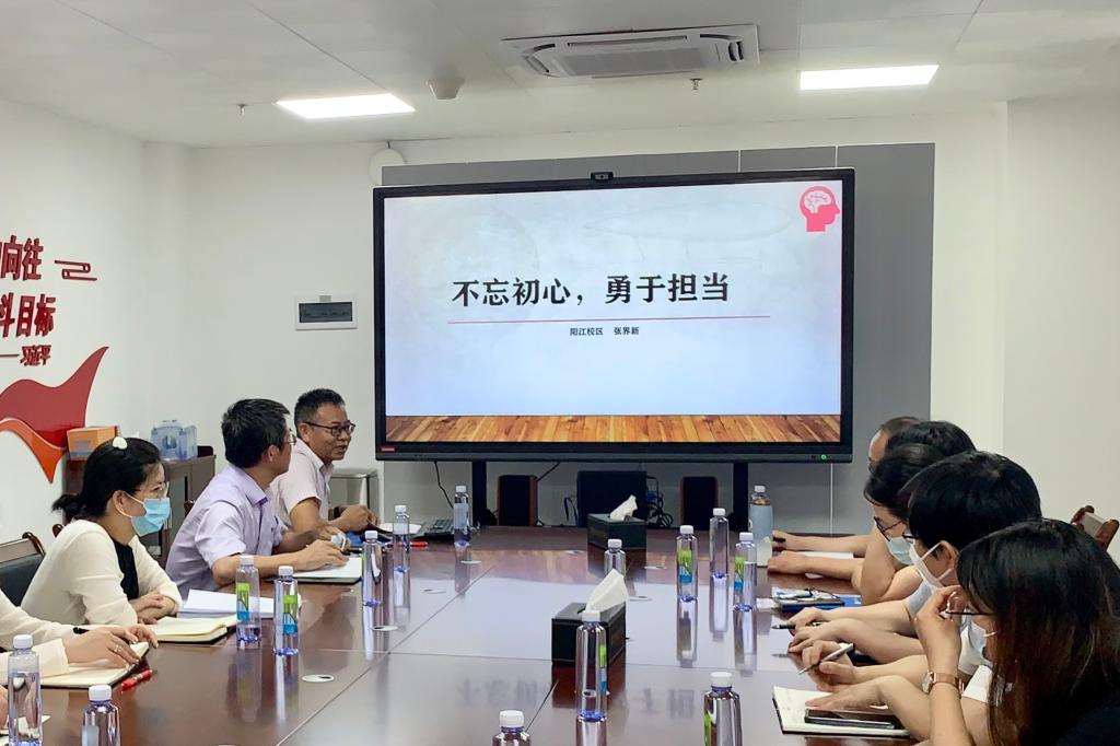5月22日下午,校区管委会副主任张界新以《不忘初心,勇于担当》为题,为教学科研部、后勤保障部全体干部,各学院教务员及校区各后勤服务单位负责人讲授主题教育专题党课。