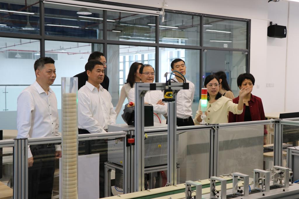 邱克楠一行首先来到校区厚为楼16楼,观看校园沙盘,详细了解校区建设和发展规划等方面的情况,实地走访校区机械与能源工程学院和商学院,深入了解校区人才培养、实验室建设、科研成果、社会服务等方面的建设情况。在机械与能源工程学院,调研组参观了现代工程训练中心、海上风电产业学院和教学科研实验。在商学院,调研组参观了数字旅游研究中心、数字经济与地方产业发展实验室等。随后,调研组来到校区海纳楼一楼展厅,了解校区建设历程,观看校区各学院展柜陈列的科研成果,并参观了校区图书馆。