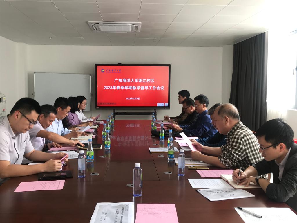 3月8日下午,在海纳楼736召开阳江校区2023年春季学期教学督导工作会议,校区管委会副主任张界新主持会议,督导小组成员吴卫祖、陈春雷、柴华金及教学科研部全体人员参加会议。