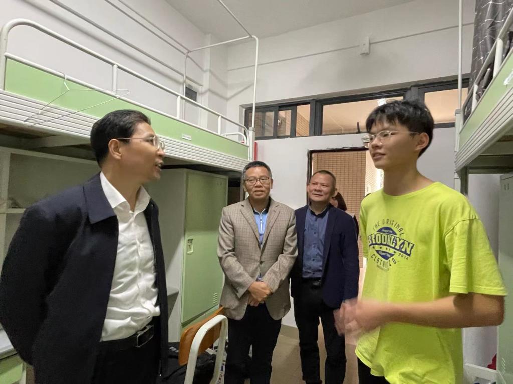 在走访中,林晓敏深入学生宿舍与学生亲切交谈,仔细询问了同学们学业情况、住宿环境以及其他日常生活等情况。通过与同学们的交流,鼓励同学们努力学习,多读书,读好书,加强体育锻炼强健体魄,并叮嘱同学们要牢筑健康防线意识,履行好疫情防控第一责任人职责。