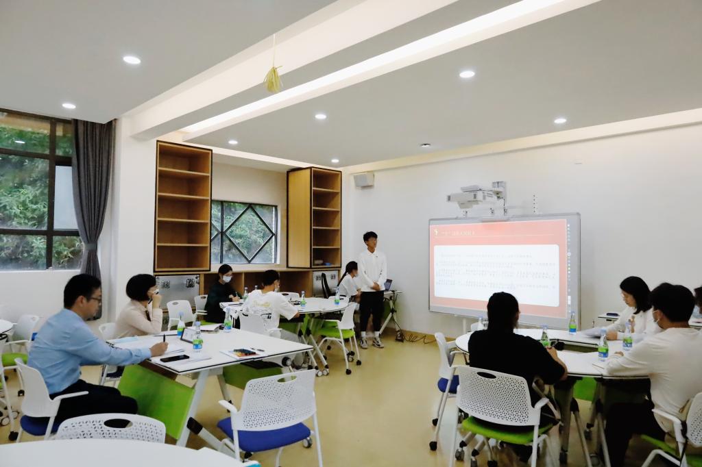活动中,思政小助理李强、李绮雯分别就“全过程人民民主”和“于党史国史中坚守初心”两个主题进行了宣讲。许浩从PPT制作、内容准确度、宣讲技巧等方面对两位思政小助理的宣讲进行了点评。