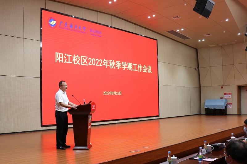 8月26日下午,阳江校区在海纳楼113会议室召开2022年秋季学期工作会议,总结校区今年春季学期工作并部署秋季学期工作。校长潘新祥同志,副校长、阳江校区党委书记、管委会主任宁凌同志,以及阳江校区全体教职工。会议由校区党委副书记、管委会常务副主任周昌仕主持。