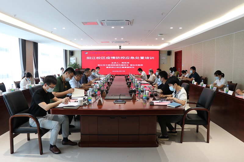 4月27日上午,校区疫情防控应急处置培训暨疫情防控桌面演练在海纳楼712会议室开展。阳江市中医院感染管理科副科长、副主任医师、阳江校区兼职卫生健康副校长陈秋芳,校区领导、校区疫情防控领导小组办公室主任毛琪以及校区各单位各部门相关负责人、疫情防控联络专员参加活动。