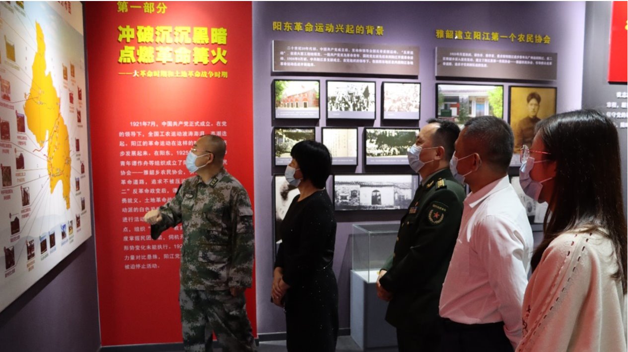 会前,阳东区人民武装部上校部长霍永利、上校政委王骁栋带领参观了区人武部的“红色阳东”展览厅,双方对进一步开展国防教育、充分利用当地丰富的红色资源加强大学生爱国教育进行深入研讨,并对设立校区征兵、军训工作站以及做好服兵役学生的服务保障等工作交换了意见。