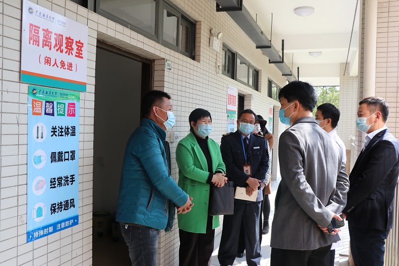 2月25日上午,阳江市新冠肺炎疫情防控检查组到校区进行检查指导。检查组组长、市教育局二级调研员关杰光一行实地走访了疫情防控重点区域,仔细查看相关台账,并召开座谈会,听取有关汇报。校区党委副书记、管委会常务副主任周昌仕参加活动。