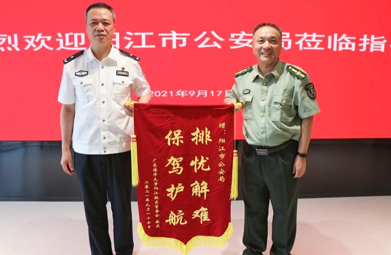 座谈会后,宁凌代表阳江校区向阳江市公安局赠送锦旗。