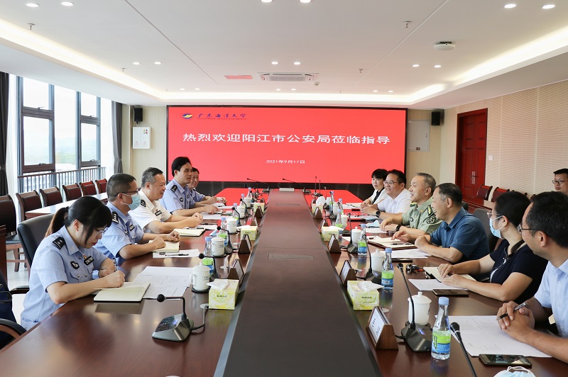 2021年9月17日下午,阳江市公安局党委副书记、副局长阮裕贵,国保支队支队长申鸿鹏,国保支队副支队长李儒侠一行5人到阳江校区实地调研。