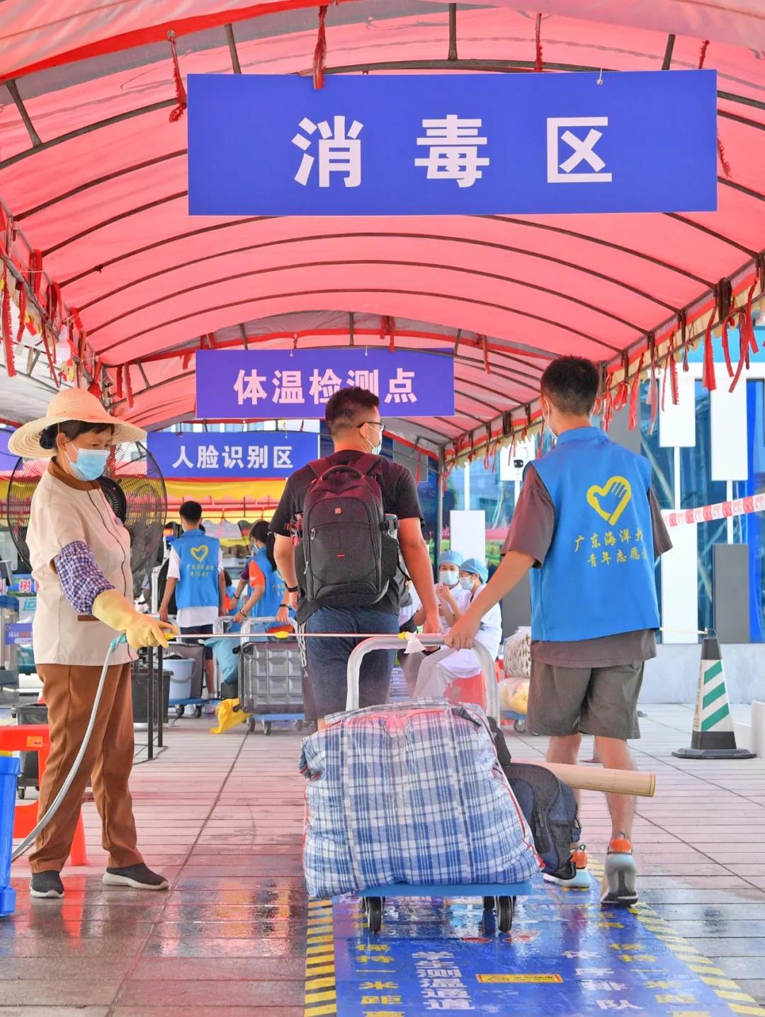 志愿者帮忙提行李