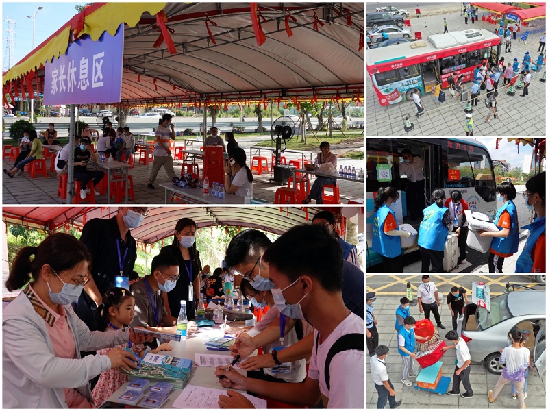 为方便新生,校方协调安排了两辆大巴车到阳江高铁站出口接送学生。校内也安排了四辆公车,新生一进校门口就将其送至学生公寓楼下的各学院报到登记点。