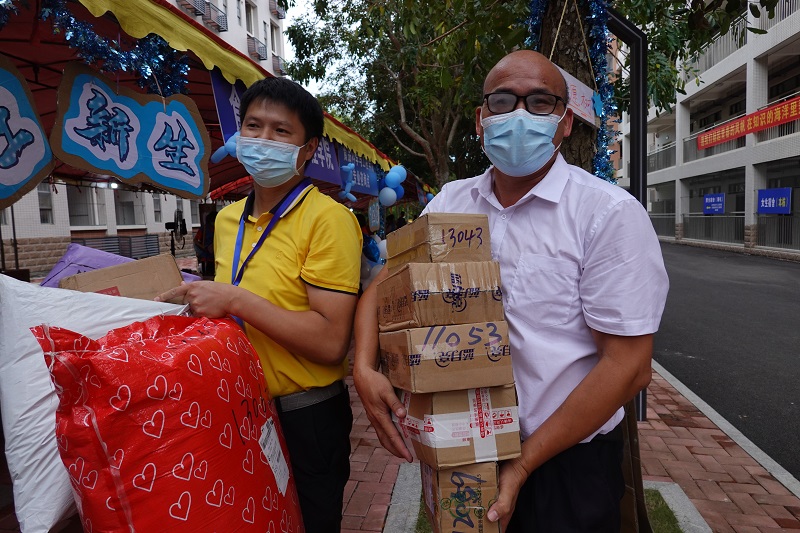 教授为新生搬行李、拿快递