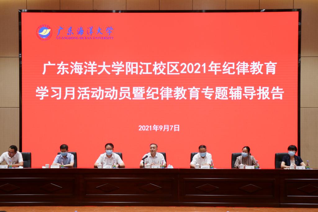 9月7日上午,按照学校党委统一部署,阳江校区党委在阳江校区海纳楼一楼报告厅组织召开阳江校区2021年纪律教育学习月活动动员暨纪律教育专题辅导报告会,校区全体干部教师参加。学校党委常委、副校长、校区党委书记、管委会主任宁凌出席并作动员讲话暨专题辅导报告。校区党委副书记、管委会常务副主任洪鹏志主持会议并讲话。校区党委委员、纪委书记毛琪对阳江校区2021年纪律教育学习月活动作了具体安排。
