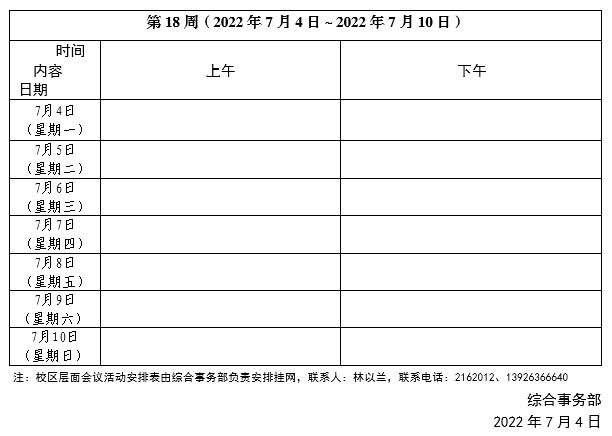 2021~2022学年第二学期第18周会议活动安排表