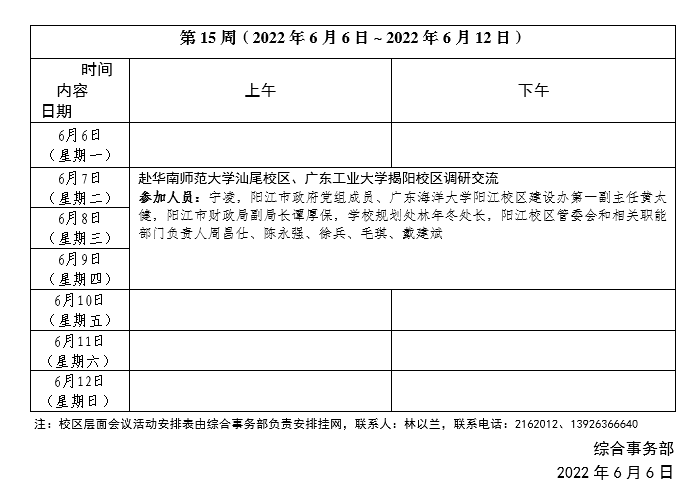 2021~2022学年第二学期第15周会议活动安排表