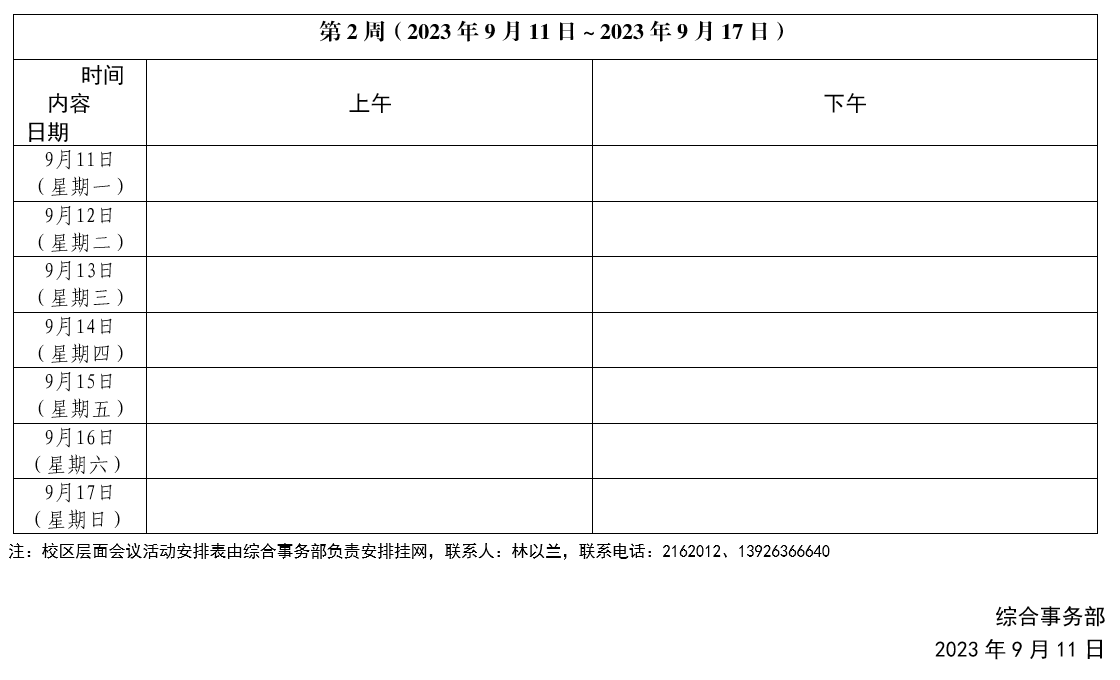 2023~2024学年第一学期第2周会议活动安排表