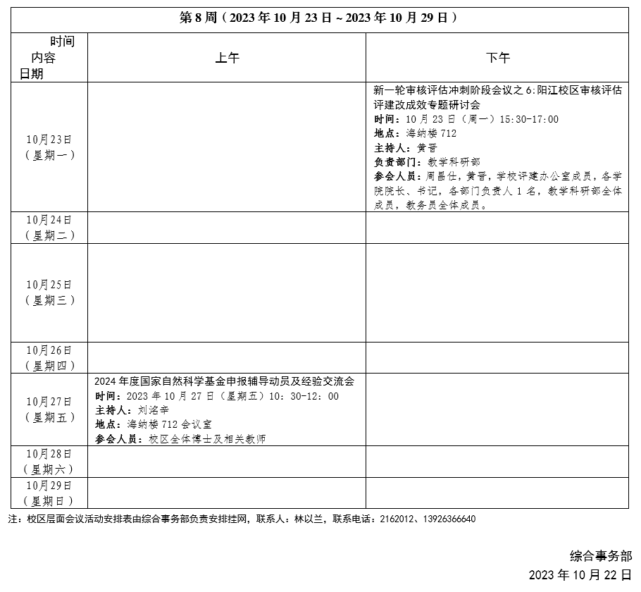 2023~2024学年第一学期第8周会议活动安排表