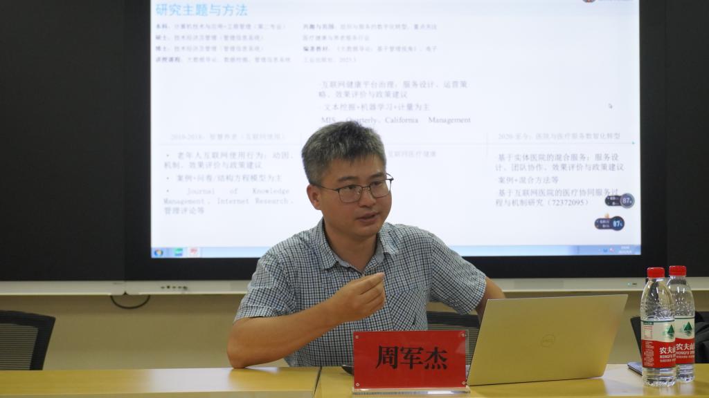 9月9日下午,beat365英国官方网站邀请汕头大学商学院周军杰教授在beat365英国官方网站会议室做了题为《智慧养老领域的研究现状、热点与趋势》的专题讲座。讲座由副院长张文杰主持,beat365英国官方网站全体教师聆听了讲座。