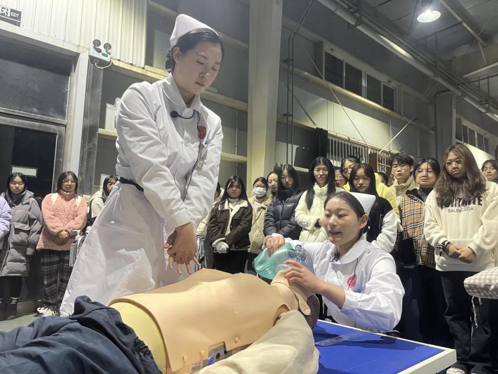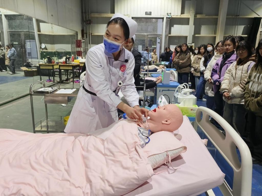 冬忽至,寒冷没有降低体操馆内热烈的气氛。一年一度的河南省护理技能大赛日益临近,为提升参赛选手的临场发挥能力,同时帮助护理专业的学生了解护理技能大赛,深化以赛促学的目的,11月14日下午,由平菊梅老师带队的竞赛团队和教师指导团队,邀请护理专业全体学生分三批进行技能操作展示观摩。