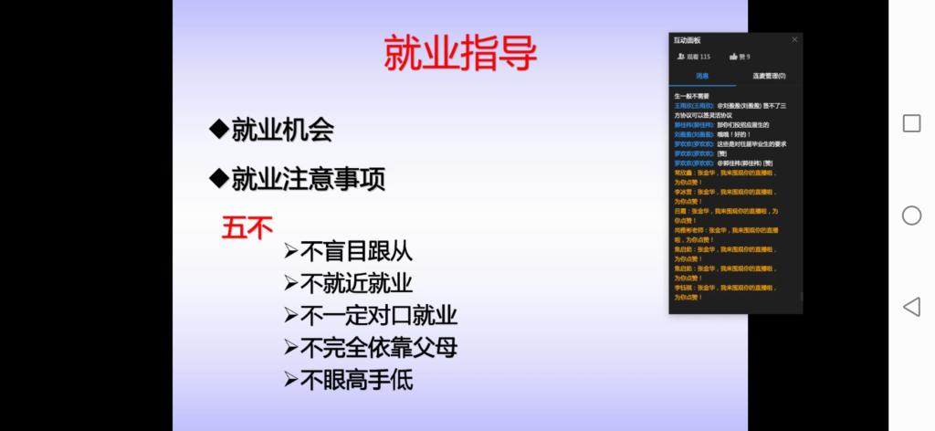 直播由罗欢欢老师主持,学科带头人张金华教授,辅导员闫泽雨等老师通过连麦耐心并详细的回答了同学们的问题。罗欢欢老师就毕业事宜、住宿问题、专升本考试和护资等做出解答。闫泽雨老师为同学们解答了三方协议和灵活就业协议两者区别。张金华教授从学生职业规划、省内省外护理就业前景、思想认知等各方面给与引导。三位老师的宣讲和答疑解决了同学们的燃眉之急并让同学们对自身职业发展规划有了初步的认识!