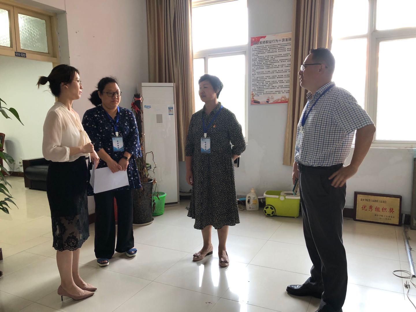 9月14日上午,副校长张丽伟带队到beat365英国官方网站开展开学前检查工作,beat365英国官方网站党总支书记张翊,副院长张文杰和教师代表陪同检查。