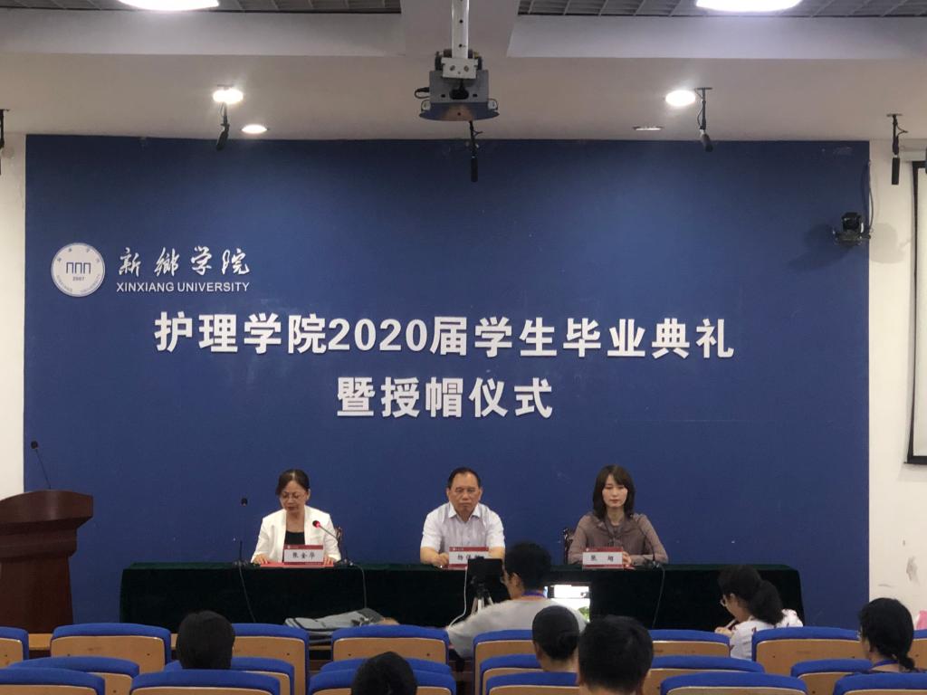 杨保胜教授在典礼上致辞。他回顾了2020届毕业生与学院共同成长的三年,寄语毕业生要习练本领,报答社会。希望同学们可以在选择中铸就精彩人生,奋斗中书写青春华章。教师代表张金华教授高度肯定了医护人员在这次疫情防控中的重要地位,希望同学们面对社会要多几分责任,面对困难和工作要学会微笑,面对未来要充满信心,面对责难要学会理解和宽容。勉励大家为护理事业的发展而奋斗终生。2017级杨古月同学作为毕业生代表发言,他向辛勤培育自己的母校和老师致以诚挚感谢,并承诺在今后的学习、生活、工作中不忘初心、牢记使命,为社会尽自己的一份绵薄之力。