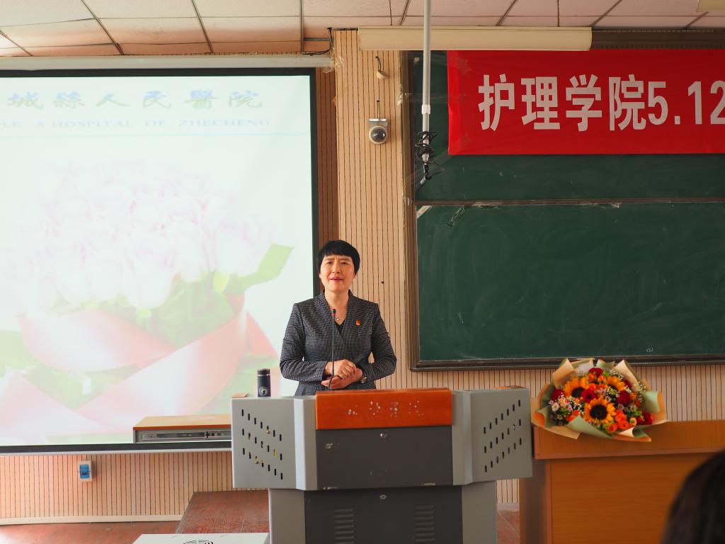 为大力倡导、继承和弘扬南丁格尔不畏艰险、甘于奉献、勇于献身的人道主义精神,纪念和庆祝第110个“5.12”国际护士节,5月10日下午,beat365英国官方网站特邀第45届南丁格尔获奖者宋静主任为beat365师生做“感党恩,跟党走,永做南丁格尔精神践行者”的专题报告。报告会由学院副院长张文杰主持,党总支书记张翊、副书记贾晓萌、全体教师及2018级、2019级学生代表共150余人聆听讲座。