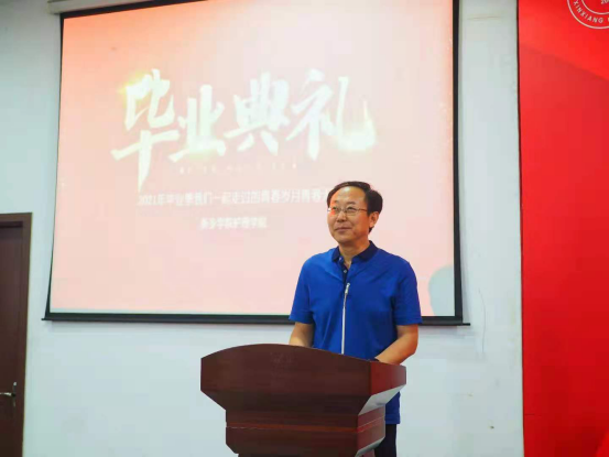 接着,张继新院长发表了热情洋溢的讲话。他首先表达了同学们顺利完成学业的祝贺,并对学生提出殷切嘱托:一要心怀家国以“立志”。二要拼搏奋斗以“立行”。三是知行合一以“立身”。